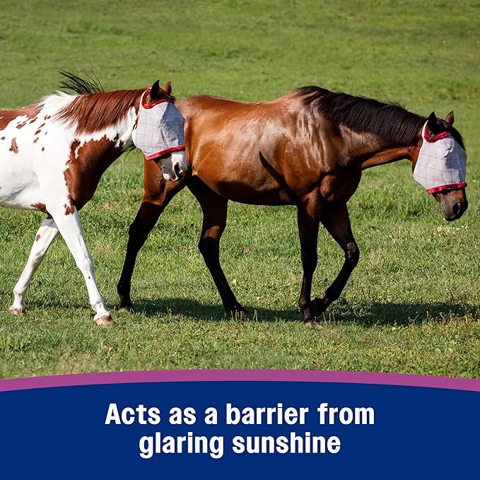 - INNOVATIVE DESIGN extends over horse’s face to provide extended coverage against insects and glaring sunlight.