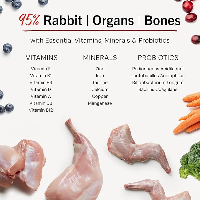 - 90% FARM-RAISED RABBIT & BONE - Premium freeze-dried raw nutrition with whole-prey approach delivers muscle-building protein, enhanced digestibility, and natural nutrients that support coat, skin, and overall health.