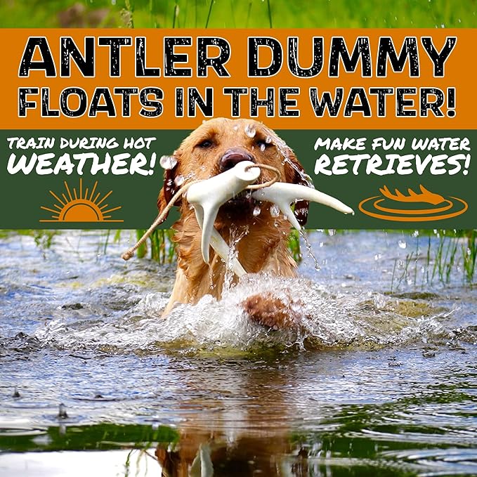 - Flexible Antler Dummy – This essential tool allows your dog to get used to the shape and look of a shed without the risk of poking their eyes, nose, or muzzle which gives them a negative experience, use on land or water to practice sight conditioning and retrieving