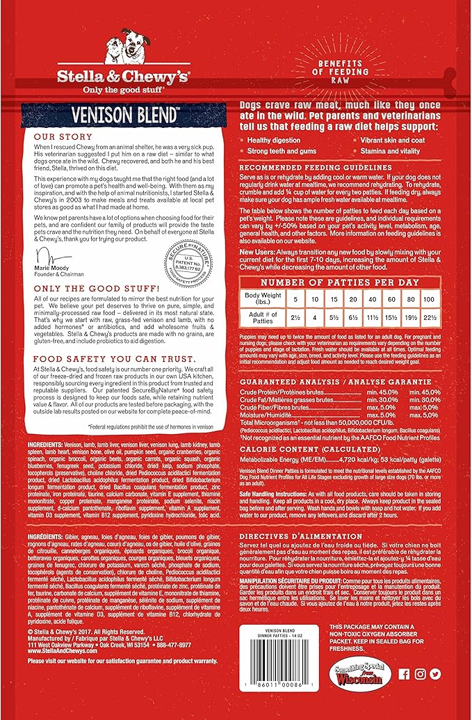 Stella & Chewy's Freeze-Dried Raw Dinner Patties - Venison Blend Recipe - High Protein Grain-Free Puppy & Dog Food - Perfect For Picky Eaters - 5.5 oz