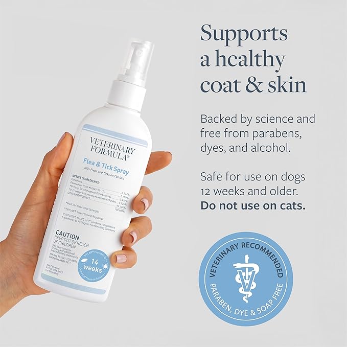 Veterinary Formula Flea and Tick Spray for Dogs, 8 oz – Easy-to-Use Dog Flea Spray, Kills on Contact, Prevents Egg & Larval Development for 14 weeks