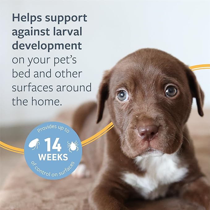 - LASTING PROTECTION – Designed for dogs, this spray also treats surfaces like bedding and crates to eliminate fleas and ticks. It provides up to 14 weeks of protection and can be reapplied as needed, but not more than once every two weeks.