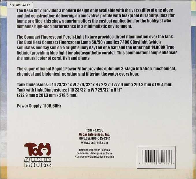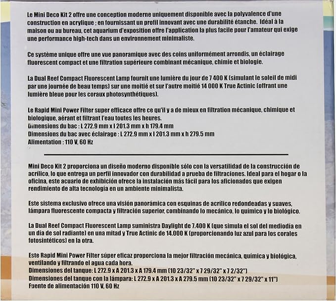- Included Components : 2-gallon aquarium, filtering system, compact fluorescent lamp, Rapids Mini Power Filter