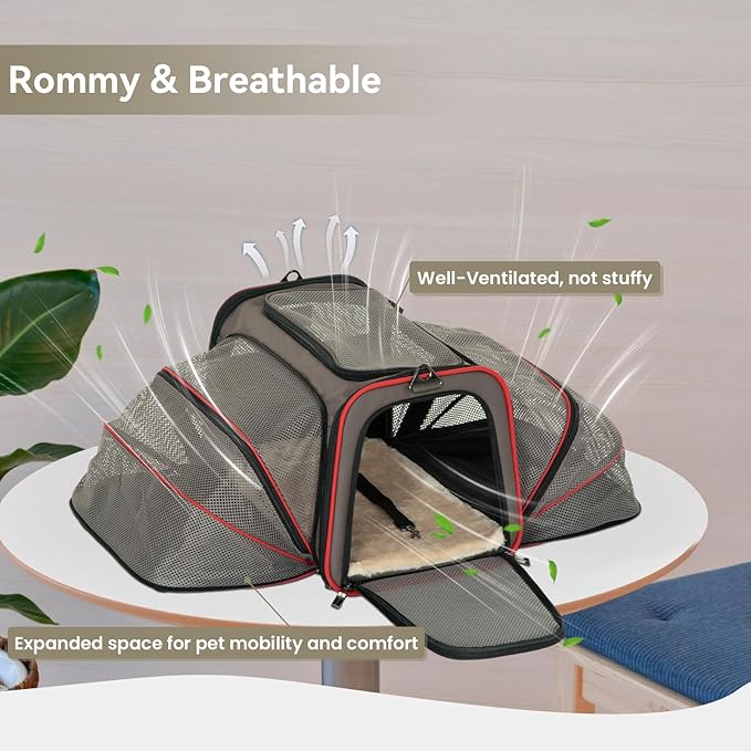 - 【COMFORTABLE SPACE】Extra extended space enable pets sprawl out, lay, see all around and relax when you have a flight trip, also works great in the car, roomy and they lay in it like a bed. Carrier can be folded totally flat when not in use.