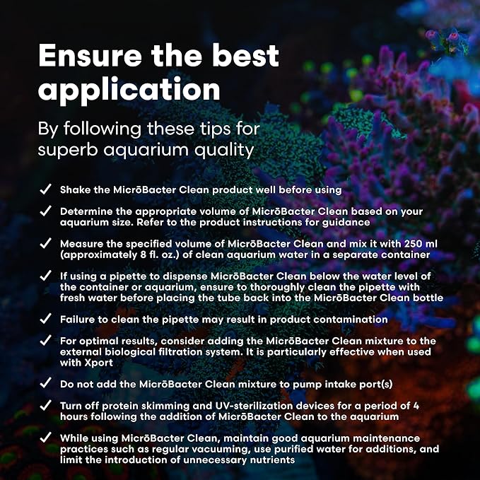 - ADVANCED MICROBIAL CLEANING – MicrōBacter Clean is a blend of non-pathogenic microbes and enzymes that work as an aquarium cleaner for live rock and decoration. It targets and breaks down unwanted substances for easy removal through scraping or vacuuming