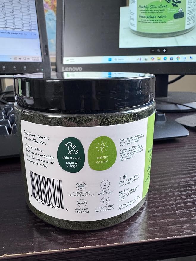 kin+kind Organic Multivitamin for Dogs & Cats - Pet Supplement for Healthy Skin and Coat - Safe, Natural Formula with Wheatgrass, Kelp, Seaweed and Coconut - Made in USA - 4oz (Medium)