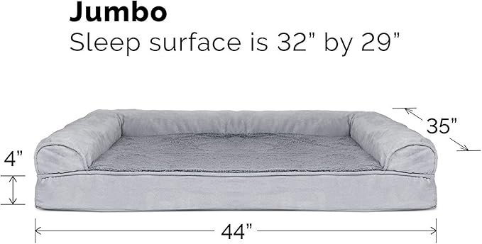 Furhaven Cooling Gel Dog Bed for Large Dogs w/ Removable Bolsters & Washable Cover, For Dogs Up to 95 lbs - Plush & Suede Sofa - Gray, Jumbo/XL