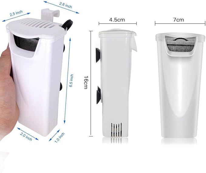 - Water filter pump can be hang on the aquarium or fixed with sucker. Low water level capability(Lowest water level 2.5cm)