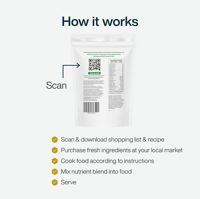 - FOR COMPLETE & BALANCED HOMEMADE DOG FOOD: Chicken & White Rice DIY is a Proprietary Nutrient Blend perfectly balanced for dogs and puppies.