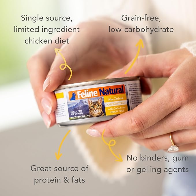 Feline Natural New Zealand Canned Catfood Wet Food, High-Meat, Low-Carb, & Grain Free Cat Food Wet, Chicken Feast, 3 oz, Pack of 24