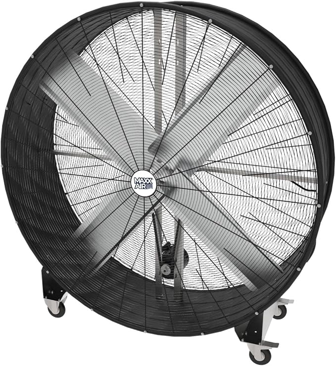 - BELT DRIVE DRUM FAN: 60" belt-drive fan from Maxx Air is a prudent choice for just about any industrial application. Where people and machines need to be kept cool in the factory, warehouse or other large area - or to keep animals comfortable, large fan takes care of it all.
