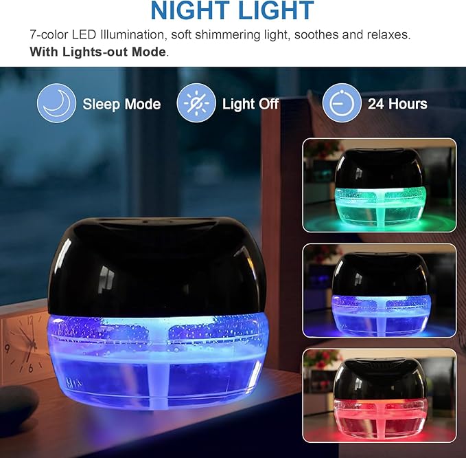 - LED Night Light: With night light design, 7 colors changing mood lights, give you a peaceful of night.