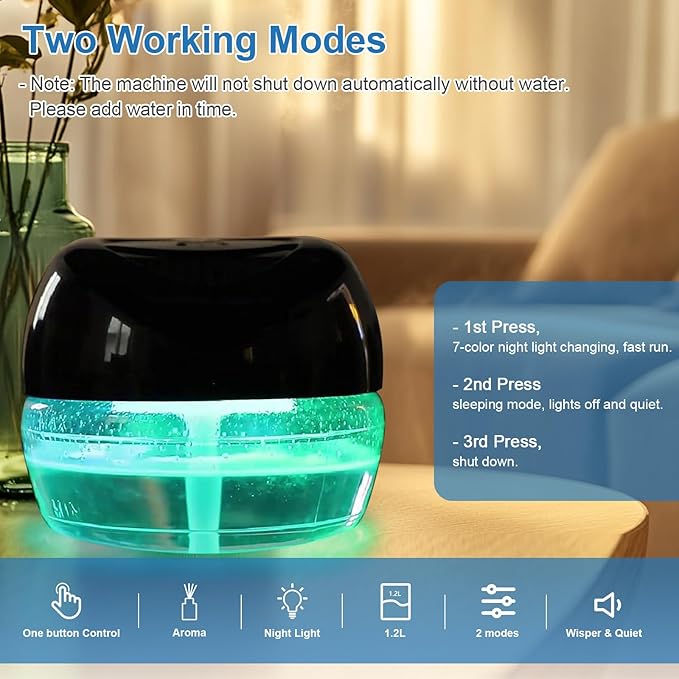 - Material: Made with BPA FREE material, the material just like baby bottle. And you can add a few drops of essential oils into the air purifier, acts as essential oil diffuser.