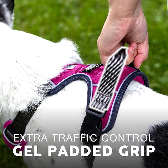 - BUILT TO KEEP YOUR DOG SAFE - Made from heavy duty Oxford and Military Grade Nylon materials, the harness features reflective strips, a Gel handle for Extra large dogs no pull has a pulling strength of up to 750 LBS! Enjoy the Front & Back leash attachments and soft padding to protect your dog's trachea.