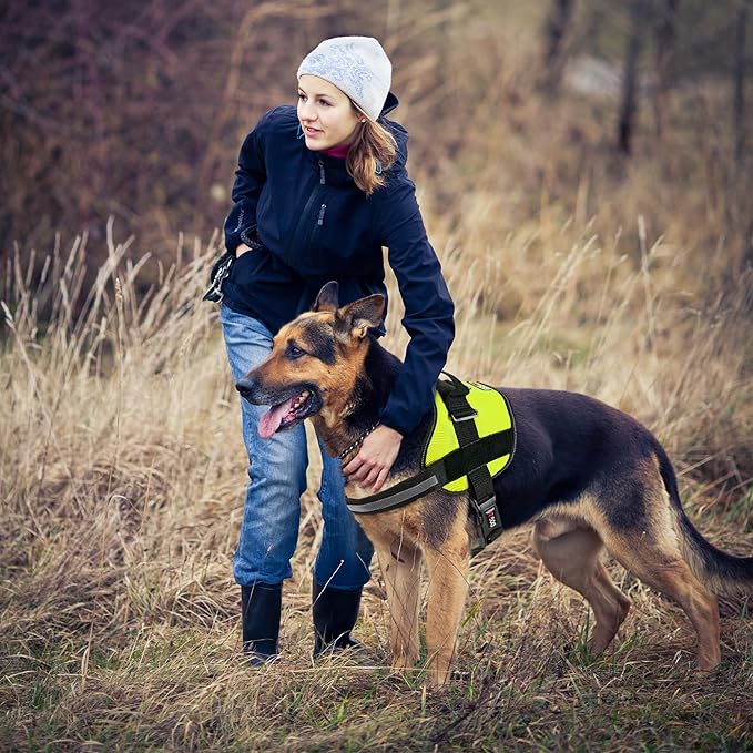 Dogline Dog Harness, Reflective No-Pull Adjustable Vest with Handle for Walking, Training, Breathable, No - Choke Harness for Small, Medium or Large Dogs Room for Patches Girth 18 to 24 in Lime Green