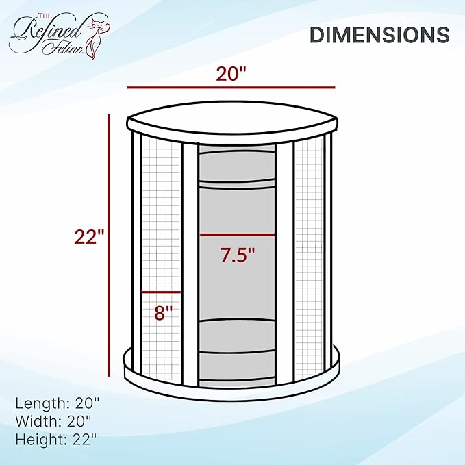 - ๐ TOOLS AND INSTRUCTIONS INCLUDED. Assembly of this modern cat furniture takes about an hour. All of the required tools are included. Overall size: 20โณ L x 20โณ W x 22โณ h.