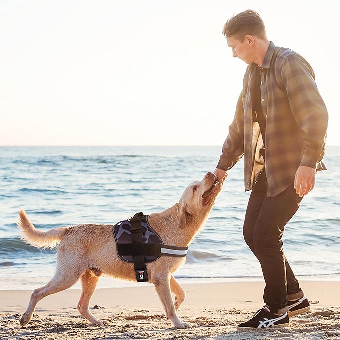 Dogline Dog Harness, Reflective No-Pull Adjustable Vest with Handle for Walking, Training, Breathable, No - Choke Harness for Small, Medium or Large Dogs Room for Patches Girraffe Grey M 22"-28"