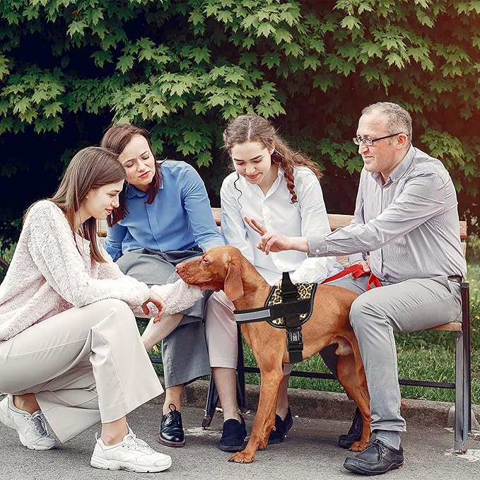 Dogline Dog Harness, Reflective No-Pull Adjustable Vest with Handle for Walking, Training, Breathable, No - Choke Harness for Small, Medium or Large Dogs Room for Patches Leopard Brown M 22"-28"