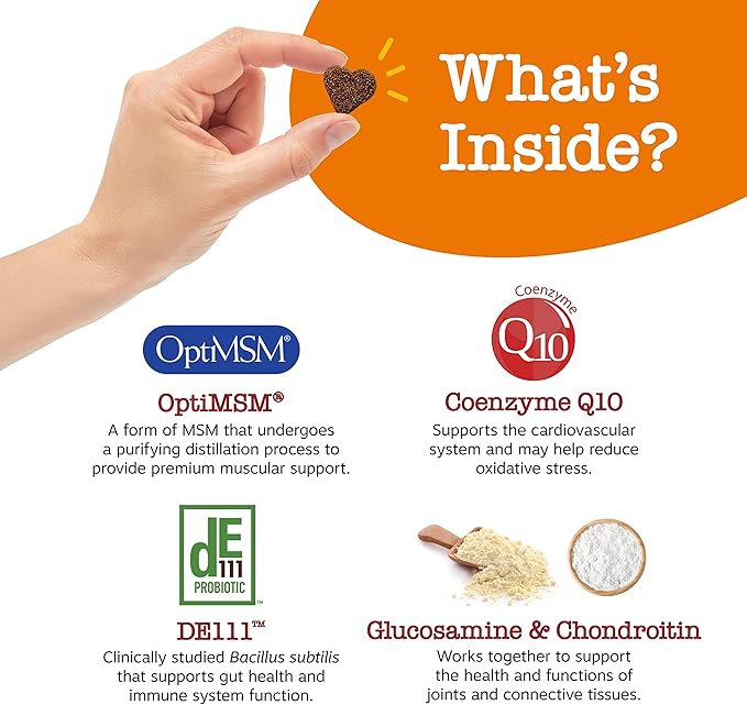 - HIP AND JOINT SUPPORT: This dog joint supplement contains Glucosamine, delivering essential nutrients for hip and joint health, providing mobility and muscular support for senior dogs and puppies