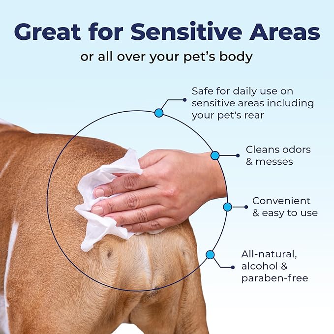 - SUPPORTS HEALTHY ANAL GLANDS & HYGIENE - Convenient soft & durable dog wipe for daily hygiene can be used all over body, on paws coat face ears & anal area. Great for dogs and cats of all ages.