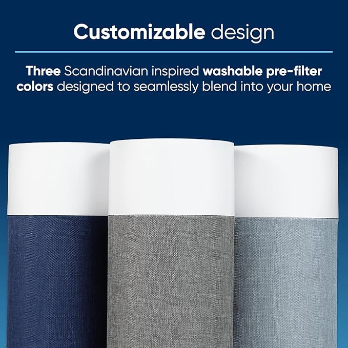 - PERSONALIZABLE DESIGN: Our most compact air purifier seamlessly fits into your home with three Scandinavian inspired washable pre-filter colors; you can personalize your air purifier to match your interior; Arctic Trail dark gray pre-filter included