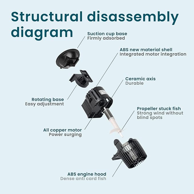 - **Super Powerful Mount with Whisper-Quiet Operation** Experience peace of mind with our stable chuck design that minimizes noise, allowing for versatile positioning throughout your aquarium. Installation, adjustments, and removal are hassle-free, while the ultra-quiet operation keeps your underwater paradise calm and serene for your inhabitants.