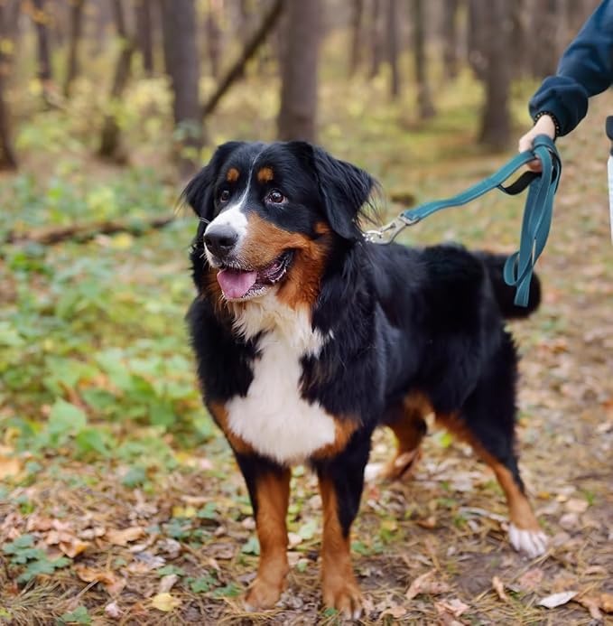 - 【SOFT PADDED DUAL HANDLES】5FT ideal length, 1 inch width leash for medium dogs, Comfortable Padded handles protect your hand without rope burn. Extra Handle for traffic control. Blue dog leash is perfect for outdoor activities, running, walking or training.