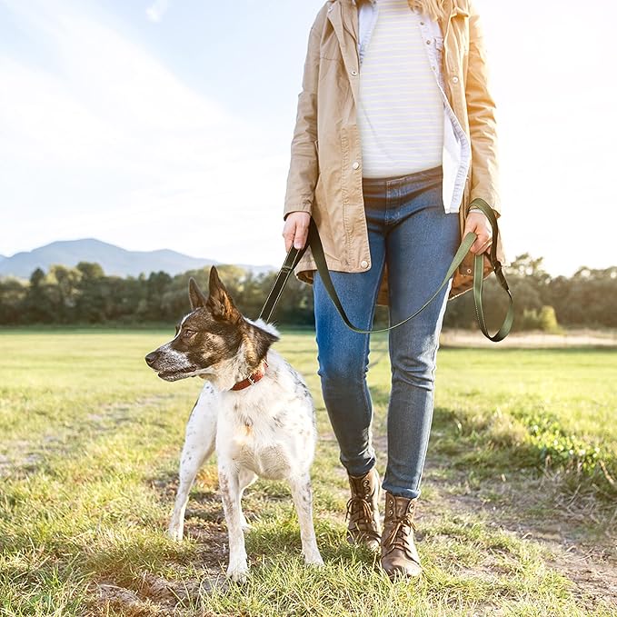 - 【SOFT PADDED DUAL HANDLES】4FT ideal length, 1 inch width leash for medium dogs, Comfortable Padded handles protect your hand without rope burn. Extra Handle for traffic control. Green dog leash is perfect for outdoor activities, running, walking or training.