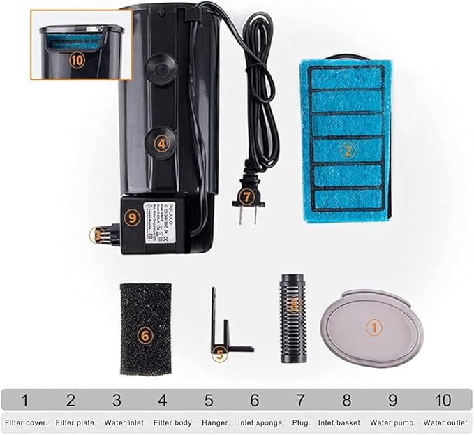- ★【Features】:Quick and easy installation, Waterfall design to help water aeration, large size filter plate, blocking water debris, removes impurities, overall filtration idea. Minimum Water Line :1.9 inch (Low water line is suitable for amphibian)