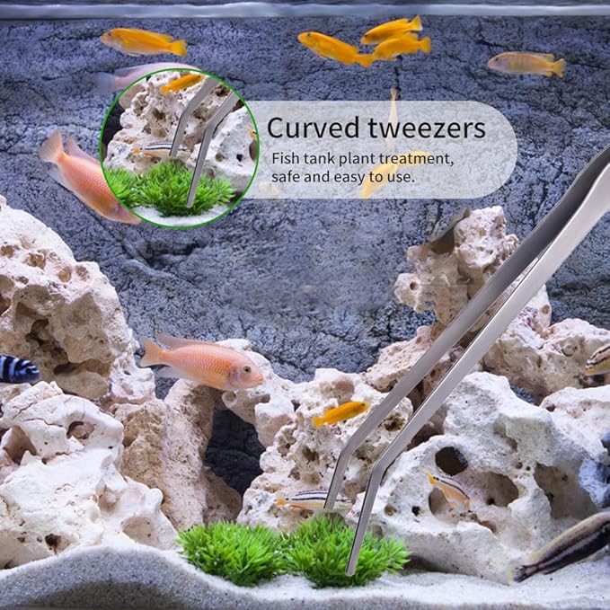 - Included: 2 pcs Aquarium Tweezer Set, including 1x Straight Tweezer and 1x Curved Tweezer, each tweezer approx 15 inch long.