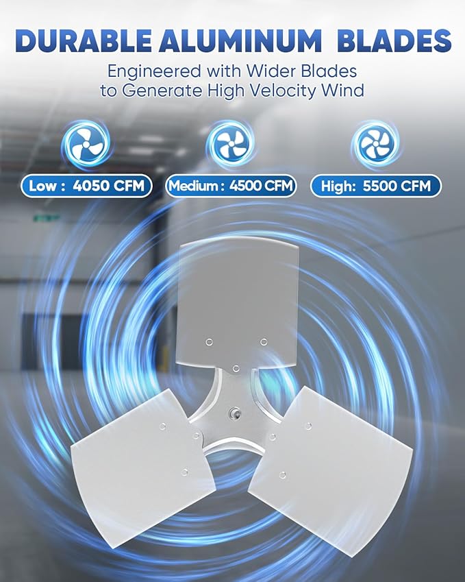 - Powerful Airflow for Large Spaces. The KEN BROWN 20 Inch Industrial Oscillating Wall Mount Fan delivers a maximum airflow of up to 5500 CFM, making it ideal for cooling large areas such as garages, workshops, and outdoor patios. Its robust performance ensures efficient air circulation in industrial environments.