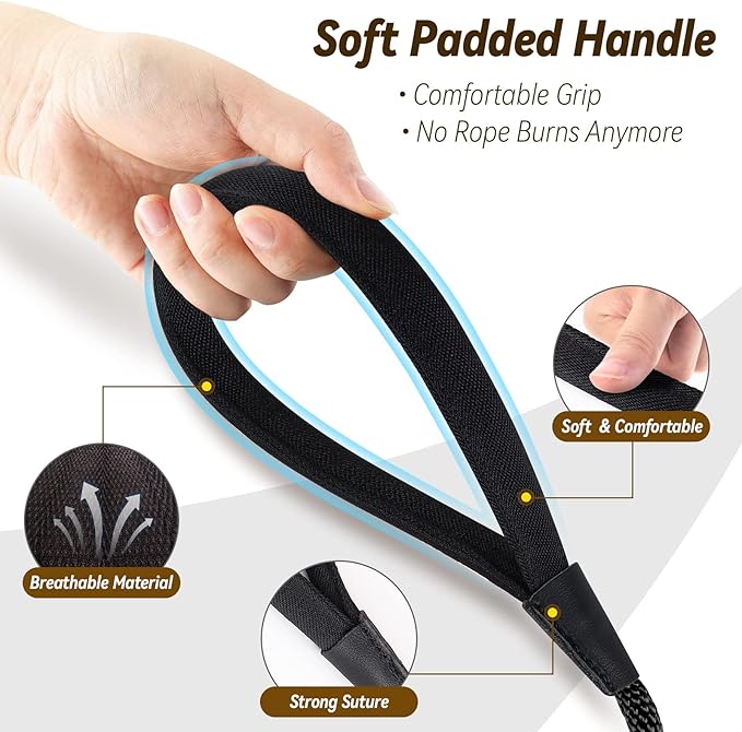 - SUITABLE THICKNESS CHECK CORD: To find a balance between weight and strength. 3/8” is a suitable thickness for long training dog leash, it has both strength and portability