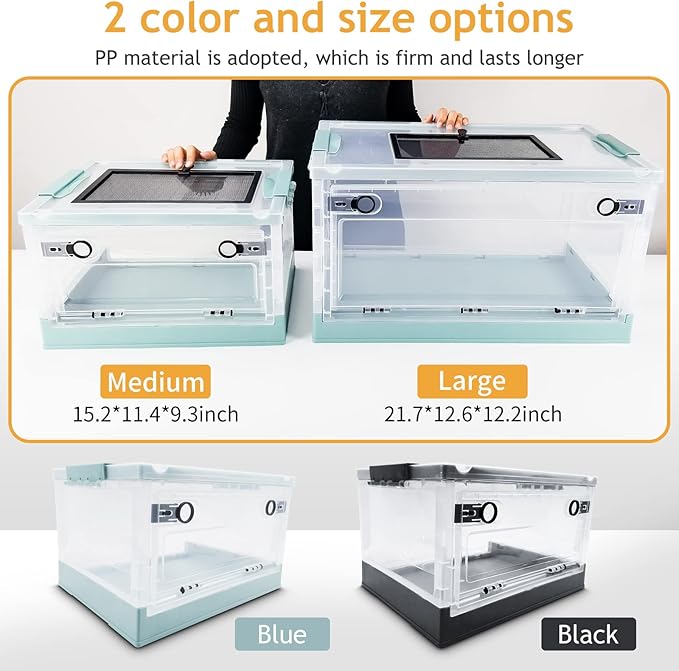 Foldable Reptile Terrariums Kits with Plant, Feeding Bowl, Carpet, Easy to Carry, Easy to Move with Wheels, Heat-Resistant Material, Suitable for Lizard Tortoise Leopard Gecko (Black)