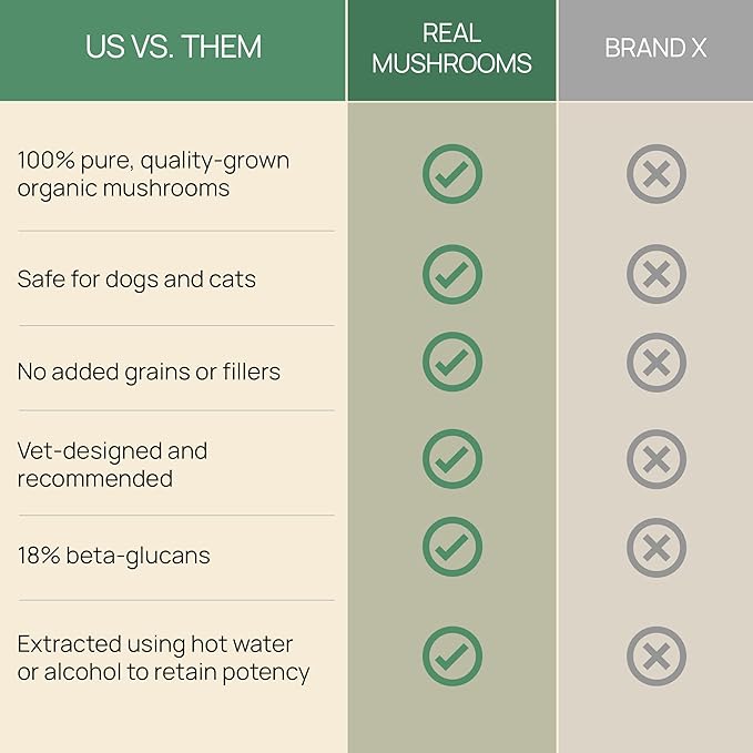 - Organic Supplement Backed by 40+ Years of Expertise: USDA Organic, vegan, and filler-free. Made by Real Mushrooms with decades of experience and a commitment to pet parent satisfaction. Manufactured in the USA using a time-tested, high-quality process.