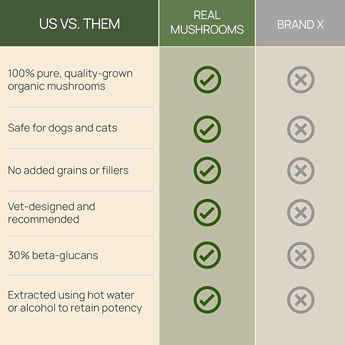 - Clean Formula & Vet-Reviewed: Formulated for simple supplementation—USDA Organic, grain-free, and reviewed by veterinarians. Alongside our 40 years of mushroom experience our supplement is manufactured in the USA, ensuring the highest quality standards are met at every stage of production.