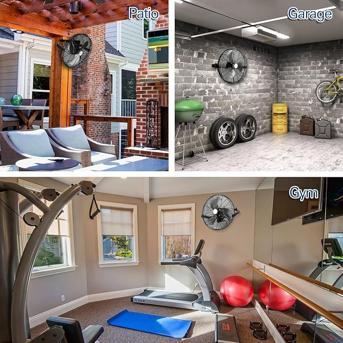 - 【180°adjustable tilting】: Equipped with a versatile 180-degree adjustable tilt, this 20 in. metal wall mounted patio fan can be angled and adjusted directly to the airflow where you need it most. Ideal for a workshop, commercial or barn, and other indoor rooms where floor space is limited or when overhead circulation is required.