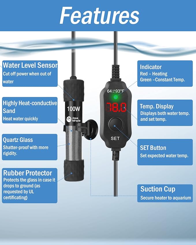 - MULTIPLE USES – This fish tank heater can be used for both fresh and marine water. It can be not only used as an aquarium heater, but can also work a turtle heater, pet fountain heater, and plant seedling heater.