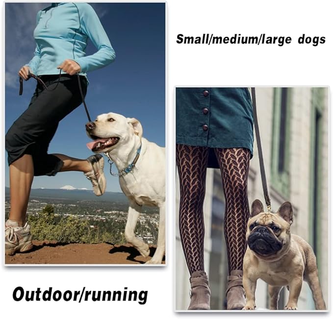 - 【Leather Dog Leash】This Leather dog training leash is made of high-quality genuine leather, which is strong and soft, with excellent hand feeling. The hand braided design can greatly reduce the impact of dogs when they pull hardly. Strong tensile strength and long-lasting, great for daily walking, running and training.