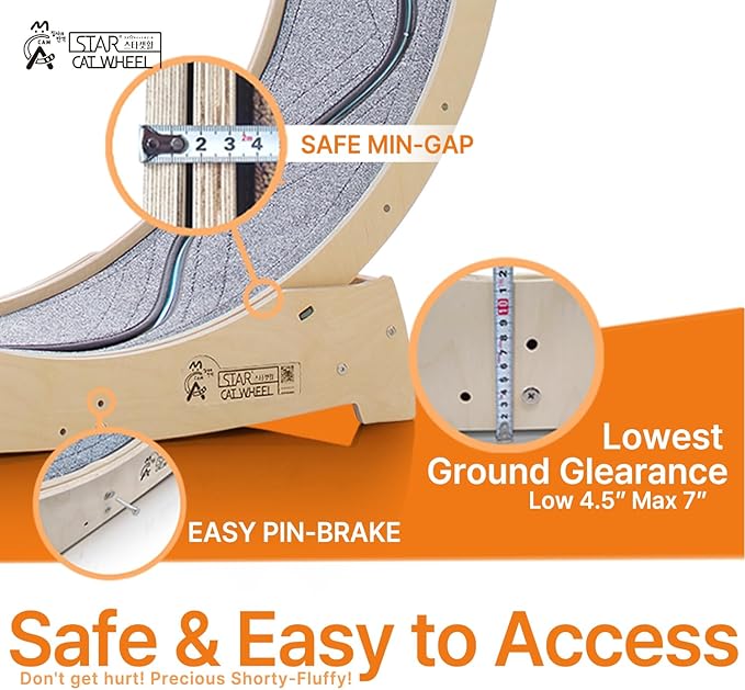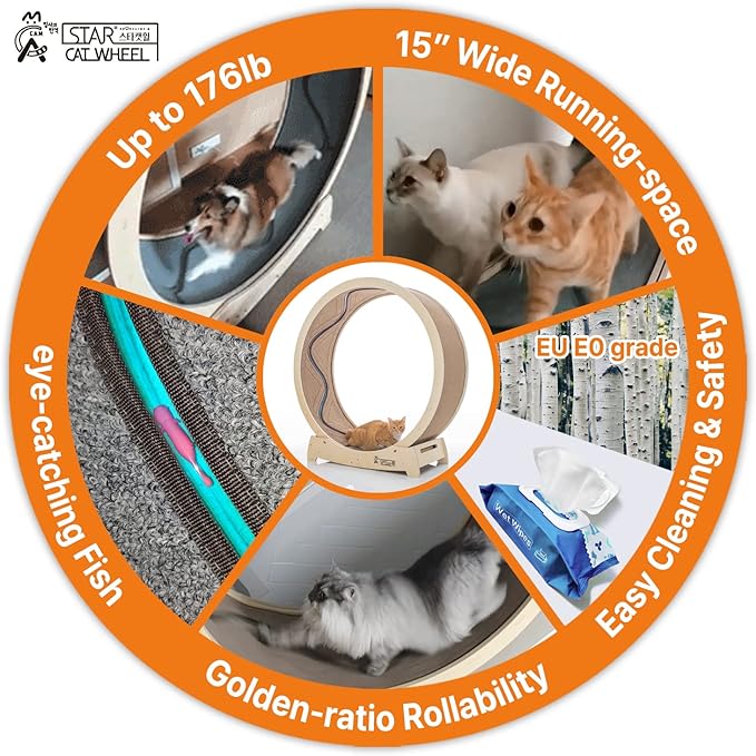 - 15.7" WIDE RUNNING TRACK and GOLDEN RATIO FOR ROLLABILITY: Star Catwheel has an ultra-wide running track and even 2 cats can ride together. With big enough wheel diameter (XL: 47.2", L: 41.7") and wide track, Star Catwheel will give your pets most satisfaction. Your pets can feel how good to ride this premium cat wheel designed with 7:3 golden ratio for rollability. Also, up to 176 lb pets can ride Star Catwheel.