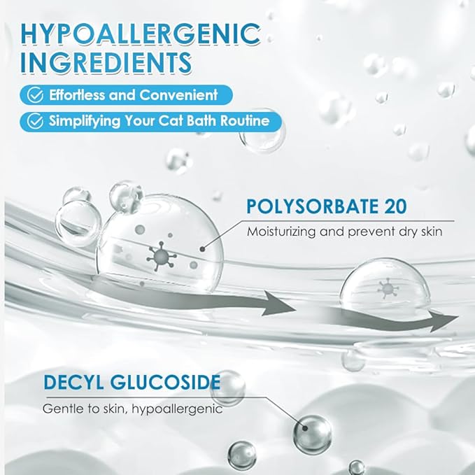 - 😸 A COMFORTABLE EXPERIANCE - Our waterless cat shampoo( or waterless shampoo) offers a Ph Balanced, neutral clean, mild scent and tearless formula, providing a comfortable and cozy experience to your cat while giving it a cat bath.