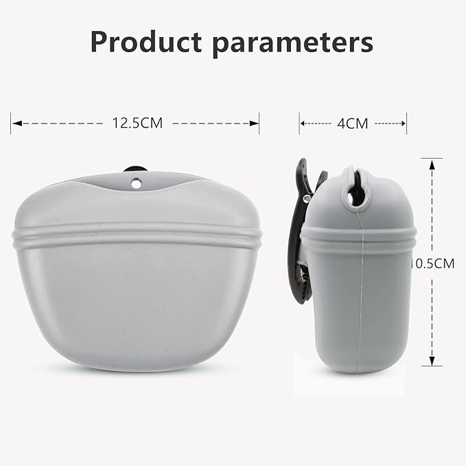 - 【Package】: Include 2 silicone dog treat pouches with clip and magnetic closure.