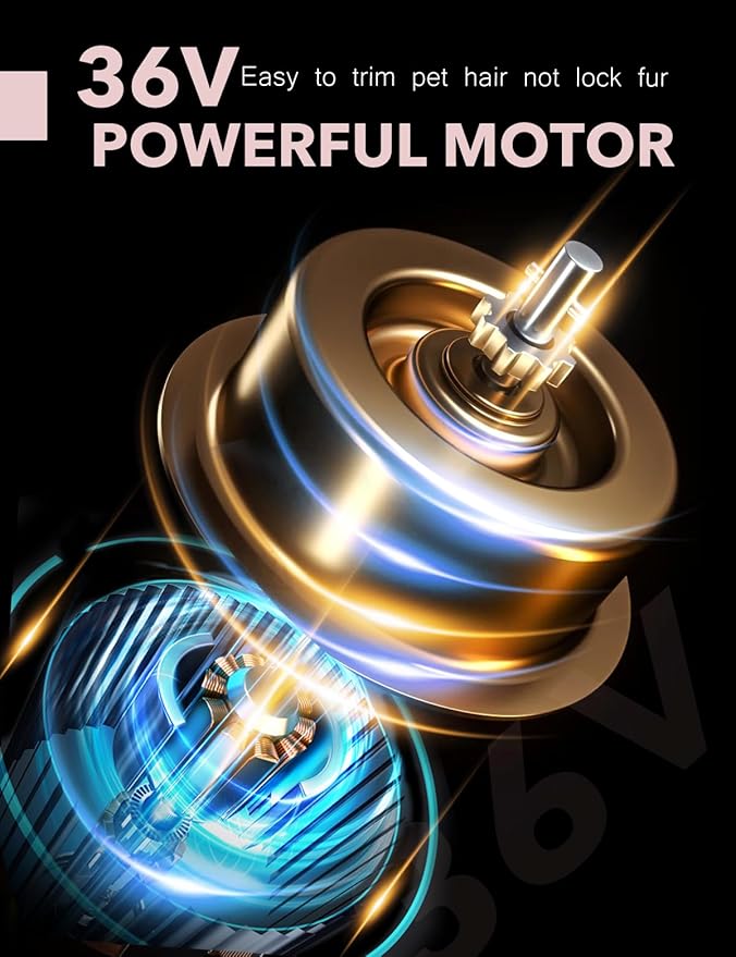 - Upgraded 36V High -Speed Strong Power Motor: Hansprou dog grooming clippers have strong power, no hair sticking, plug and use, no need to charge, to provide strong and stable power, you can use it to fast trim pet's hair and cut through smoothly.