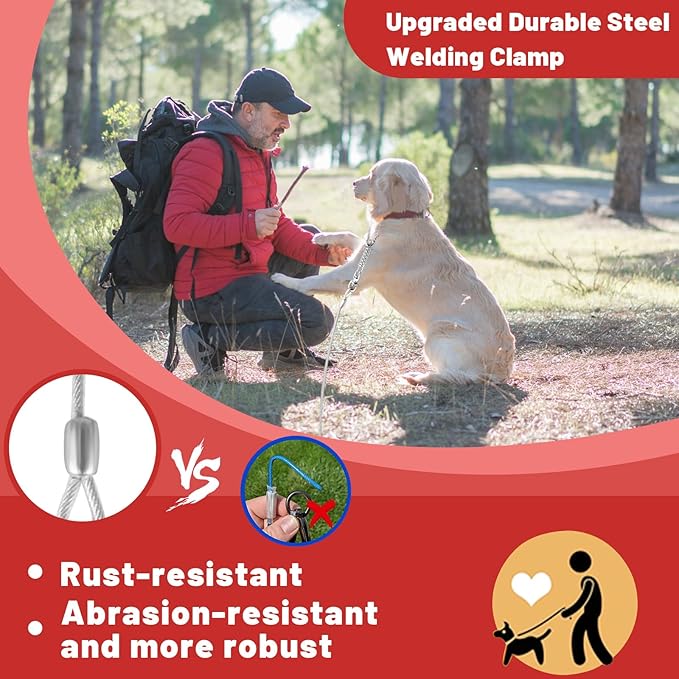 - DURABLE MATERIAL:The steel cable is very strong, wrapped in a soft PVC protection tube, durable, rust-proof, high-strength anti-bite, not easy to be torn by the dog, and can be used for a longer period of time.