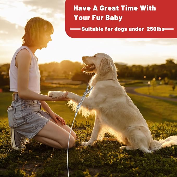 - DURABLE MATERIAL:The steel cable is very strong, wrapped in a soft PVC protection tube, durable, rust-proof, high-strength anti-bite, not easy to be torn by the dog, and can be used for a longer period of time.