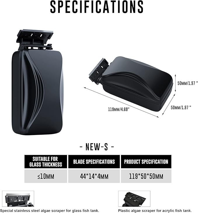 - 【POWERFUL MAGNET】Made with a powerful magnet so that this brush can work on tanks with very thick glass. This model can work on glass thickness up to 10mm.