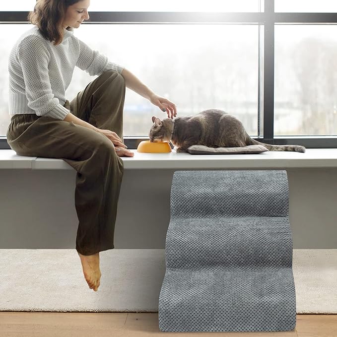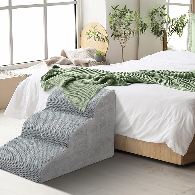 Dog Stairs for Small Dogs - High Density Foam Dog Ramp, Extra Wide Pet Steps with Non-Slip Bottom for High Beds, Couche and Sofa, Best for Dogs Injured, Older Doggy Cats (Grey, 3 Steps)