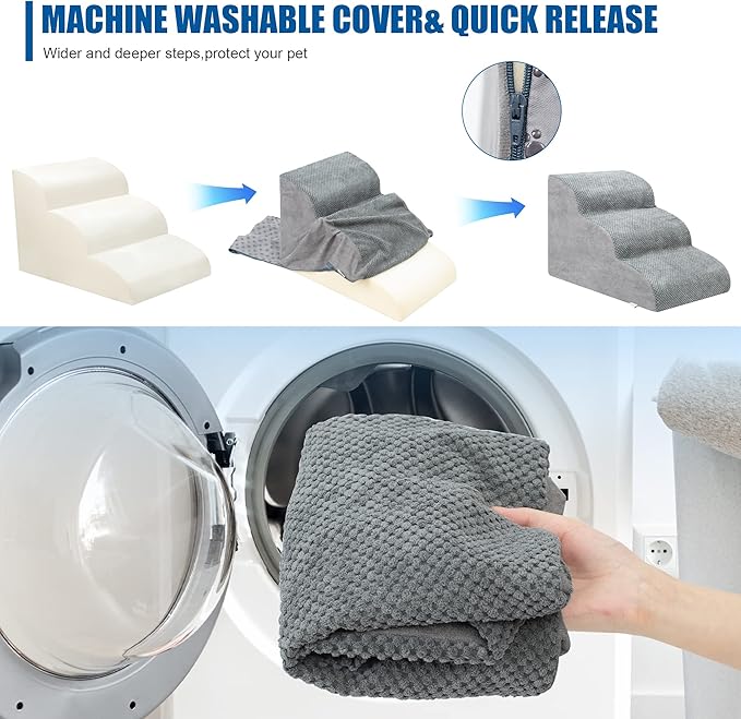 - Easy to Install and Clean: This pet step is 23.6 inches long, 16 inches wide and 15 inches high. It can be assembled and disassembled through simple steps. It is easy to clean. You can wash the removed cover by machine to keep the pet step clean and tidy