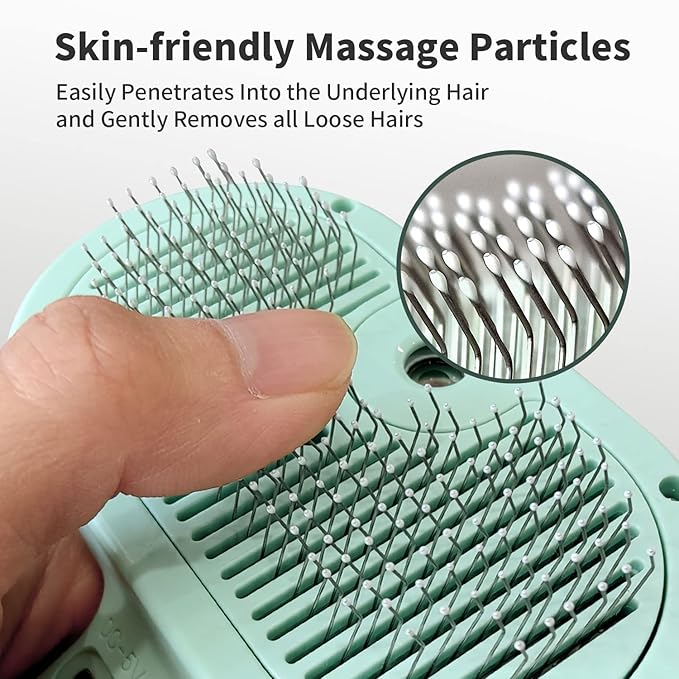 - 【Self-Cleaning Function】 The steam cat brush has a one-touch release button. After combing, gently press the hair removal button to easily clean the hair on the comb. More portable and simpler.