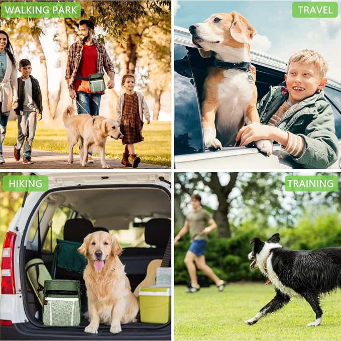 Dog Treat Pouch-3 Ways to Wear Treat Pouches for Pet Training and 2 Pieces Clicker Taining for Dogs,Dog Training Treat Pouch Bag and Dog Clicker for training with Waist Belt Shoulder Strap-Dark Green