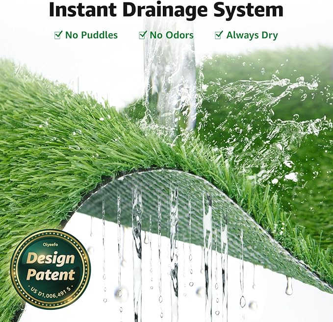 - 2 PCS PET ARTIFICIAL GRASS: The grass is about 1.25 inches tall. Not only is it realistic in appearance, but it feels just like real grass without the annoying dry, dead grass patches. It's completely safe for your furry friend to use. The artificial grass pad has excellent drainage and can quickly drain urine without staining the pet's claws.At the same time you can easily wash one while the other is ready for use.